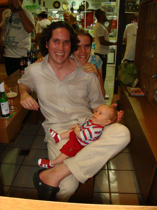 A familinha da Nina (que estava dormindo neste momento): Vinícius, Sofie e Leleo na maior, no colo do pai, adorando o movimento.