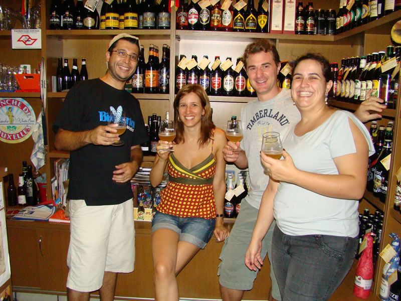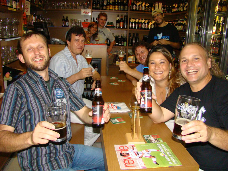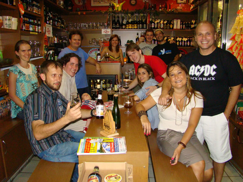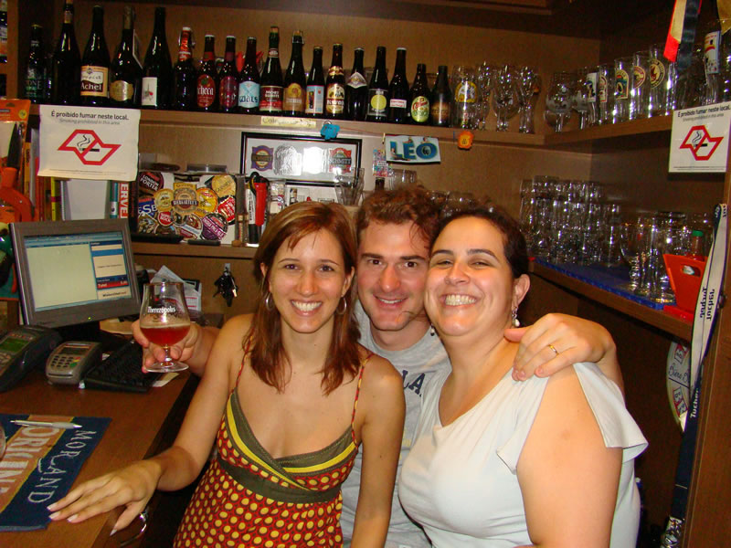 A gente experimentando a kölsch Freskika, em homenagem à tia Kika e ao Nils, que moravam em Colônia. (Freskika é ela mesmo!!!)